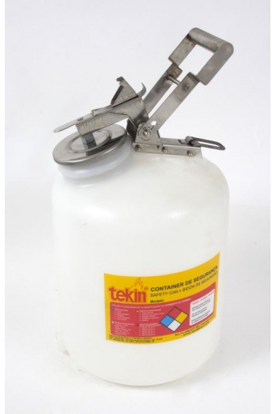 Projetado para o armazenamento, transporte e descarte de líquidos inflamáveis e corrosivos, que reagem ao aço inox como ácidos e descarte de laboratórios em geral, pois é confeccionado com uma liga polímero - Polietileno Patenteada , a qual resiste a esse tipo de liquido agressivo. Este equipamento tem como função um rápido enchimento e despejo com segurança graças a abertura super dimensionada de 100mm de diâmetro de seu gargalo, uma posição fixa na alça proporcionando que a tampa permaneça aberta para fácil enchimento e despejo.Também possui todo seu sistema de acionamento, tampa e corta-chama em inox para suportar a agressividade do liquido em questão.