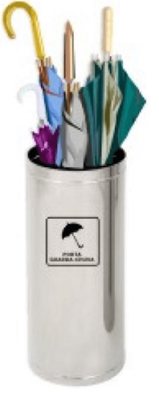Porta guarda-chuva fabricado em aço inox. Com capacidade para 23 litros.