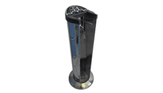 Embalador de guarda-chuva fabricado em aço inox, com acabamento superior em plástico ABS. Contém 200 membranas plásticas.